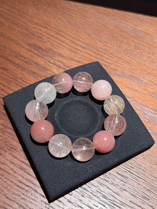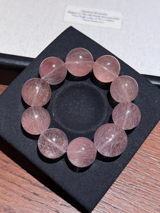 售出欣赏 毕业级粉钢丝兔毛 Rutilated Quartz(18-21mm)
