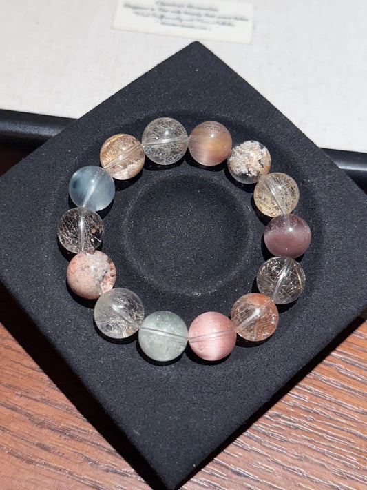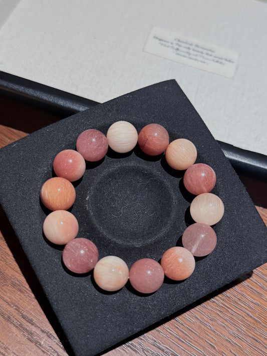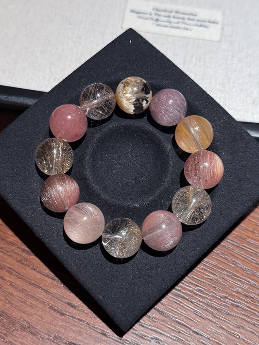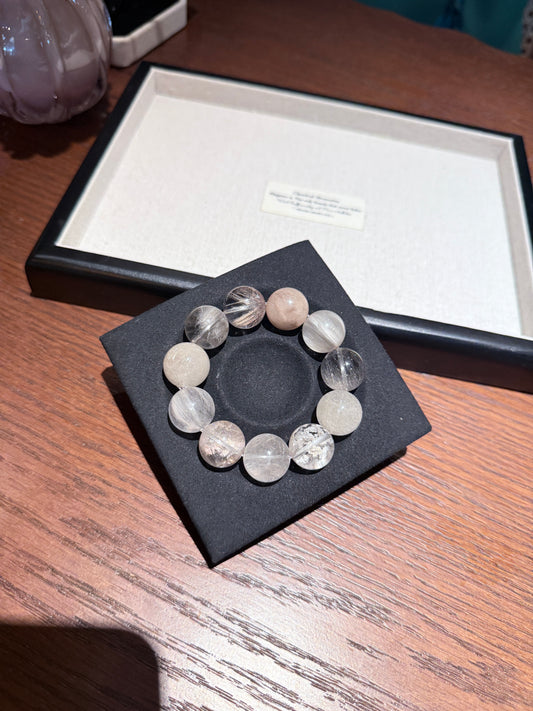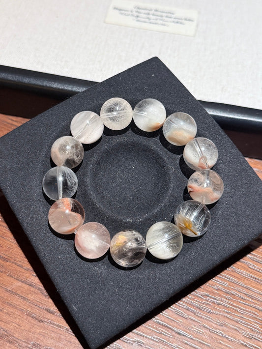售出欣赏 水蜜桃俏色双色兔毛 Rutilated Quartz(13mm)