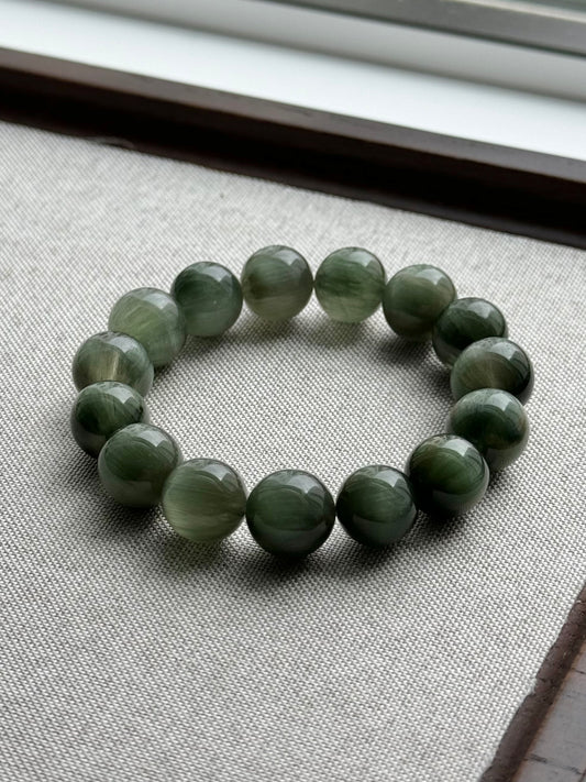 Cat’s Eye Rabbit Hair Crystal in Emerald Green 翡翠绿猫眼兔毛 (12.5mm)