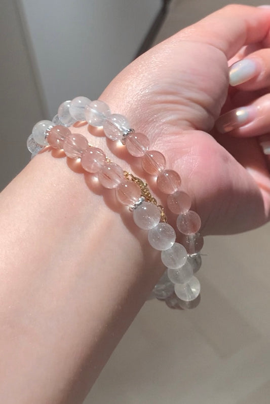 Pink and White Brushed Double-Ring Rabbit Hair Quartz 白粉拉丝兔毛 (8mm/15.5mm)