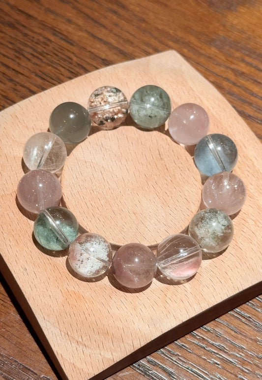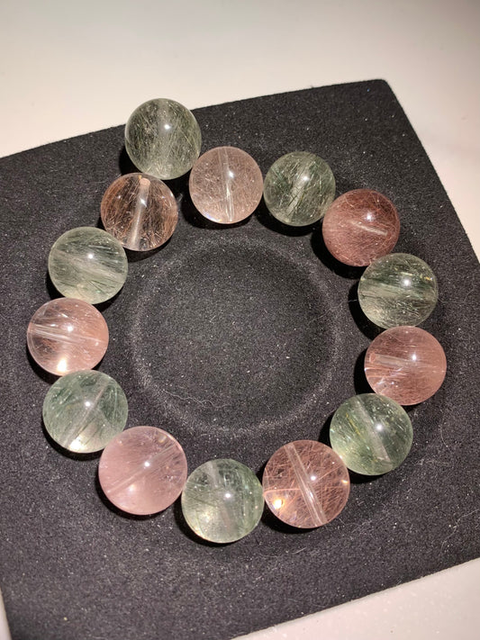 无花果欢宜 粉绿钢丝 Pink & Green Steel Wire Rabbit Hair Quartz (14mm)